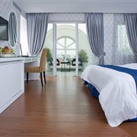 Room size: 45M2. ( 01 double size), Room have private - large Terrace with wonderful Panoramic view, Full size bathroom with bathtub, Remote control air conditioning, Cable TV, Stylist boutique Decor, Wooden floor, Working table. FREE Wireless internet access, Welcome drinks & refresh towels, Welcome complimentary fruit platter, Orientation map,Daily complimentary buffet breakfast Daily complimentary bottled water, Wooden floor, Dual split-type Air-conditioning 32’’ flat screen TV with cable program, IDD telephone, Electronic safe deposit box Refrigerator & Minibar, Writing desk & reading lamp, Tea bags & coffee making facilities, Alarm clock, Bathroom with standing shower, Hair-dryer & Bathroom Amenities, Shaver outlet (220 volts), Security peephole, Electrical adaptor, 24-hour power back-up,